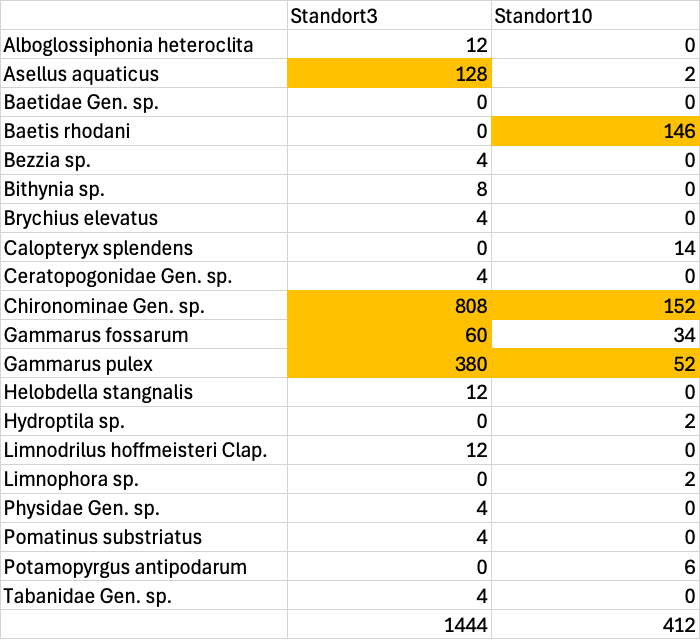 Tabelle 1: Makrozoobenthos des Körnebachs